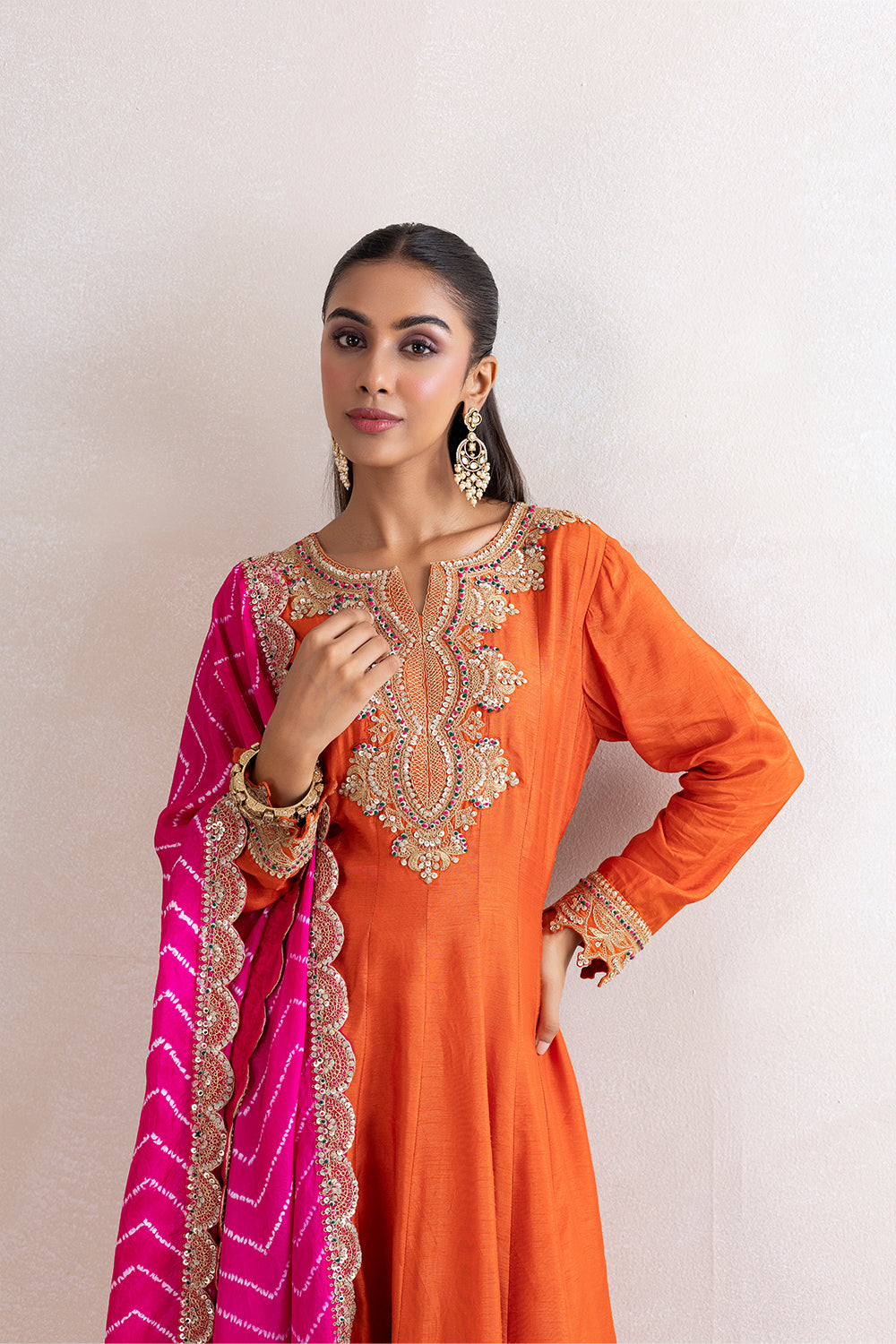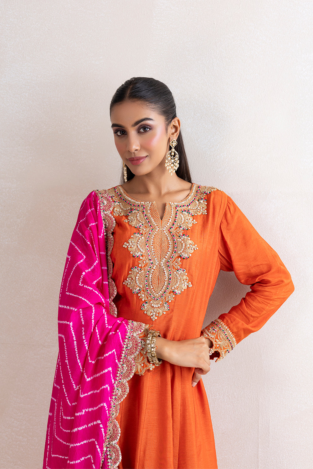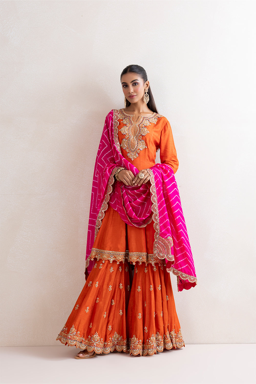 FABRIC: Chanderi Silk Anarkali and Sharara with Shibbori Dupatta