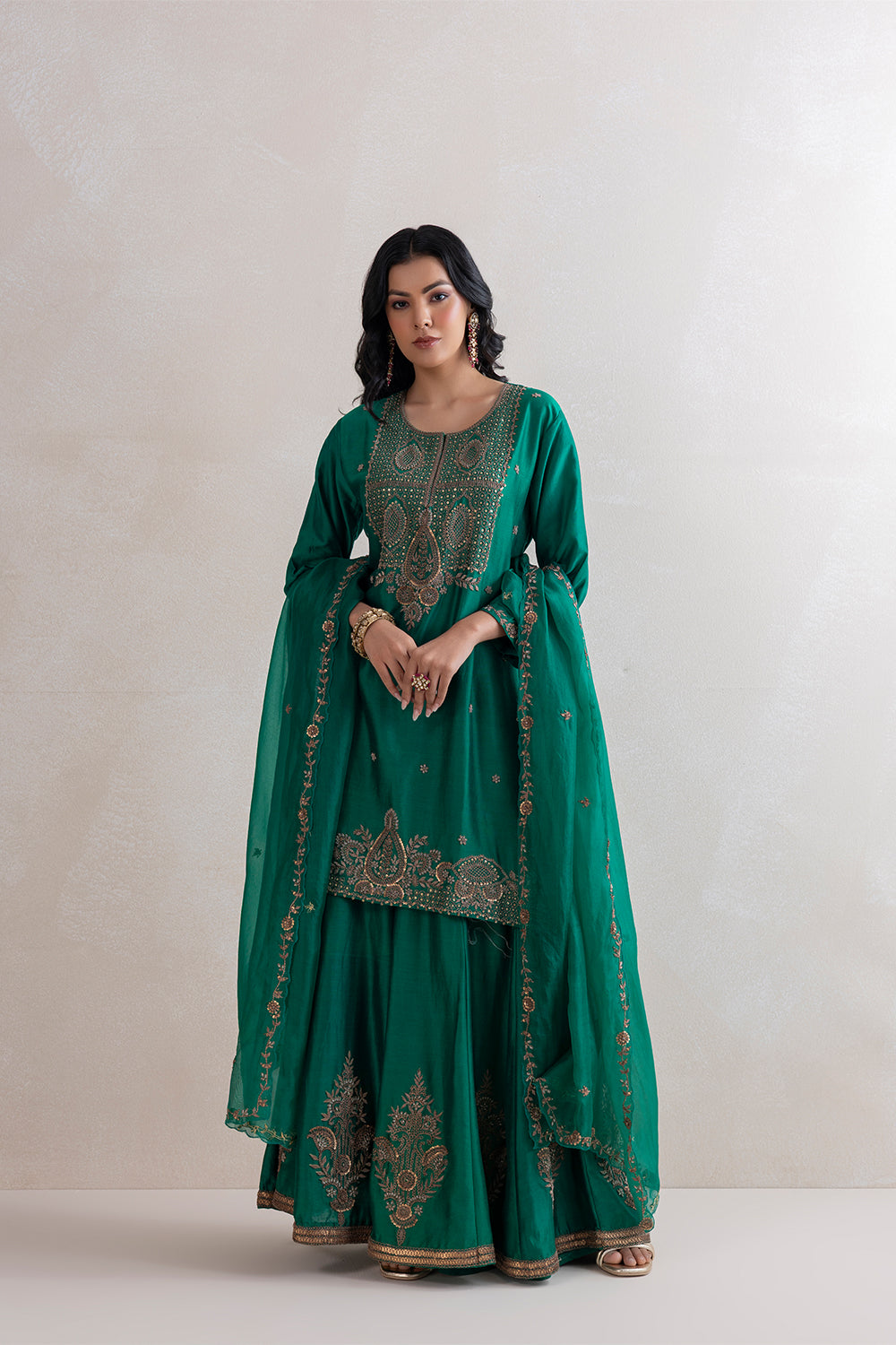 FABRIC: Chanderi Silk Kurta, Silk Sharara and Organza Dupatta