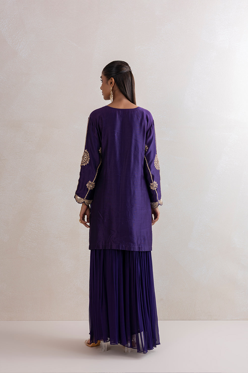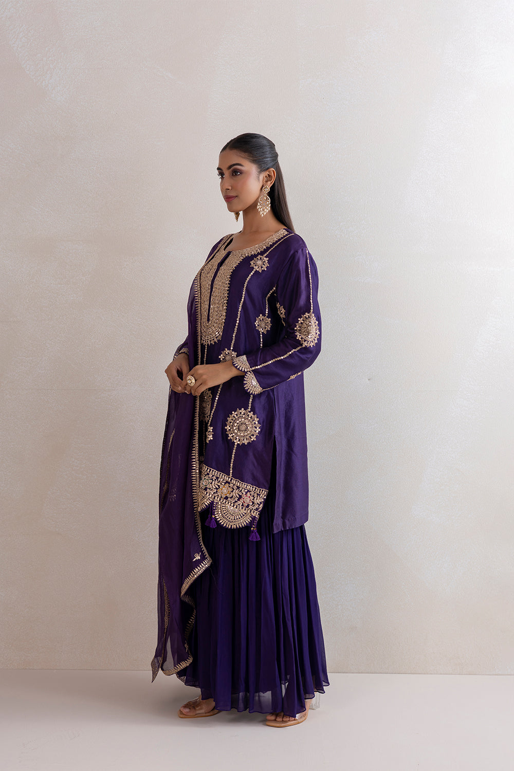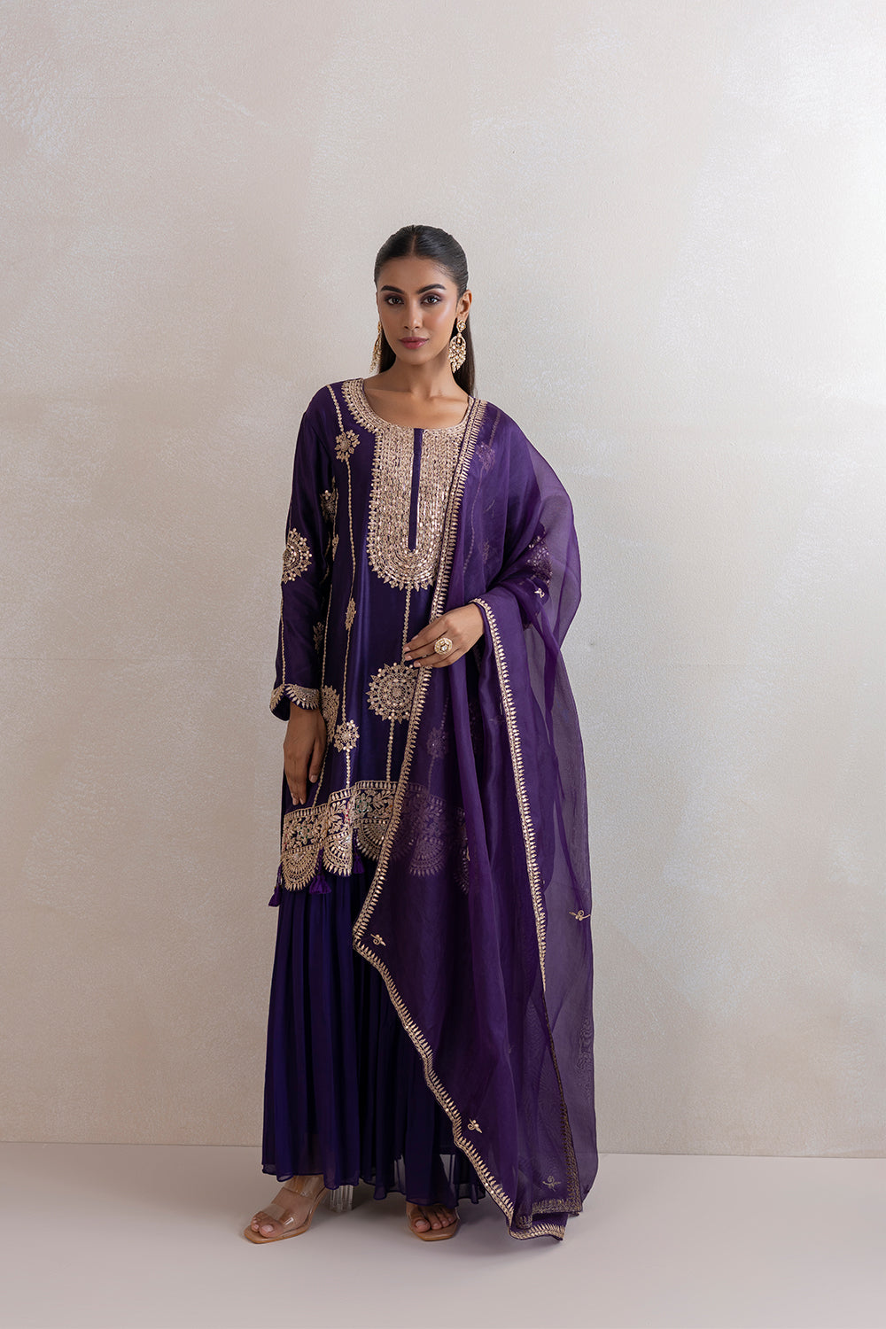 EMBROIDERY DETAILS: Silk Kurta and Georgette Sharara with Organza Dupatta